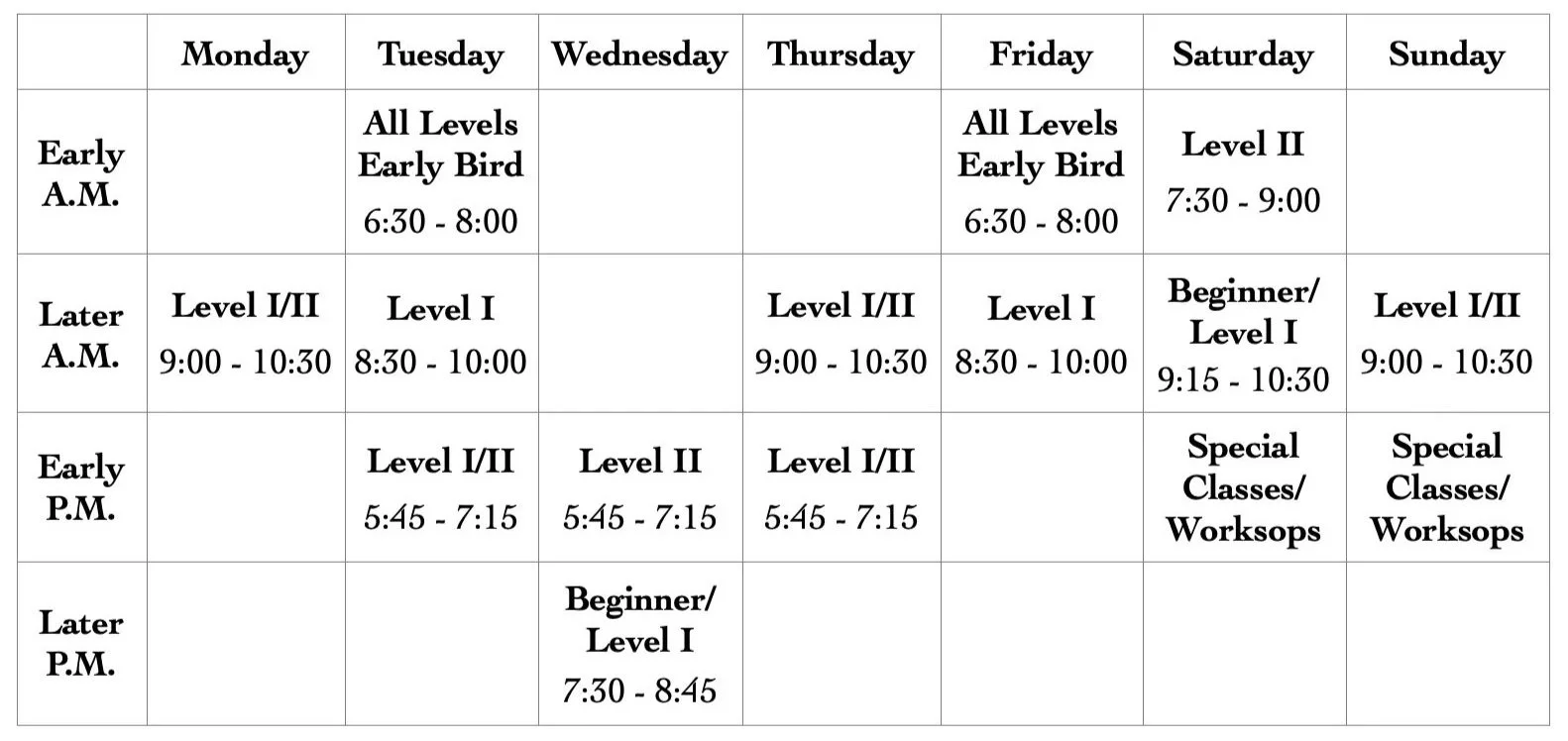Level I: For all students who want to learn the basics of Iyengar Yoga—alignment, sequencing, prop usage, basic philosophical principles that guide practice. These classes are ideal for newcomers to the practice with no major health challenges, or students from other yoga methods who want to improve their foundational skills. Classes are focused on empowering students with the skills and knowledge to develop their own personal (or “home”) yoga practice, as an adjunct to attending classes.